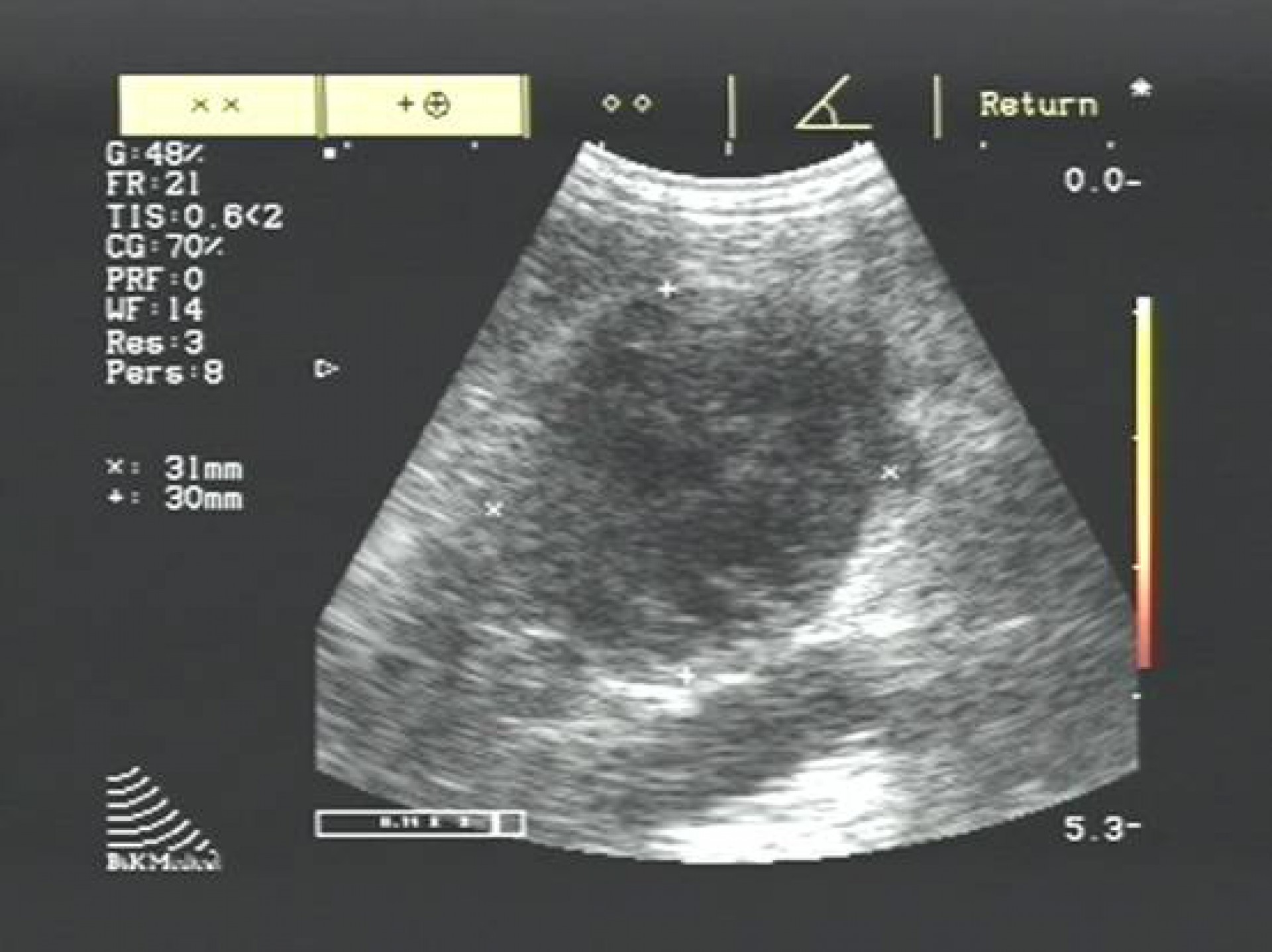 A daganatos mellékvesét az azonos oldali vese előtti területen a bordaív alatt találjuk meg.